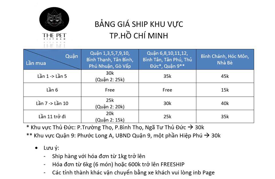 The Pet có dịch vụ giao hàng tận nơi trên toàn quốc, áp dụng cho khách mua hàng trên website, Fanpage và Shopee, không áp dụng cho khách mua trực tiếp tại cửa hàng.