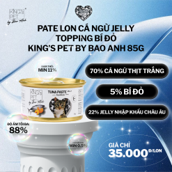 Also, due to the use of exquisite white tuna meat, when you open the lid of Jelly King’s Pet By Bao Anh Tuna Paste, you will feel the fresh scent of the ingredients, which differs from the fishy smell of other brands. In addition time, fresh ingredients make the product avoid the use of unnecessary chemical additions, buffers, or artificial scents to excite the cat’s taste.