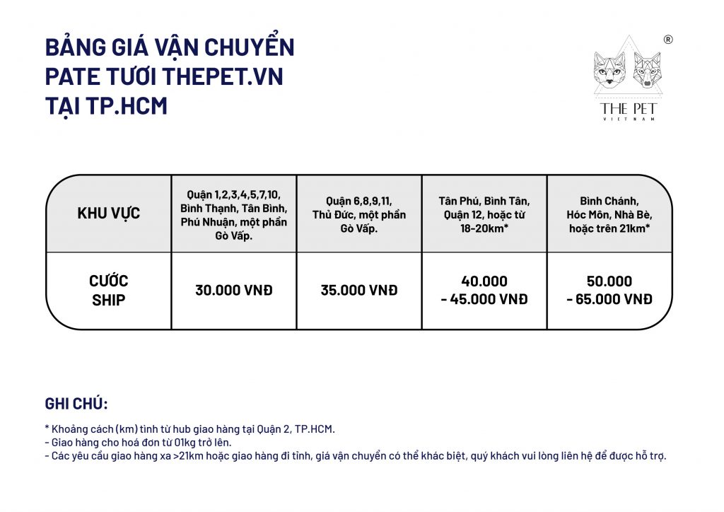 Bảng giá giao hàng tham khảo (có thể thay đổi tuỳ khu vực):