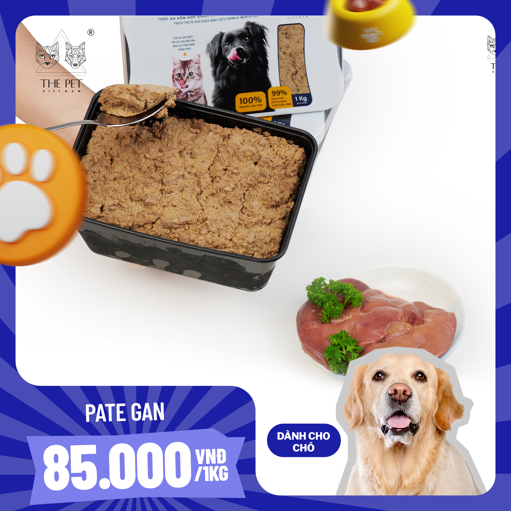 Thành phần: Gan gà tươi (80%), chất tạo đông (agar), chất tạo đặc (bột mì), khoáng vi lượng (Canxi), và các vitamin (A,E,D)
