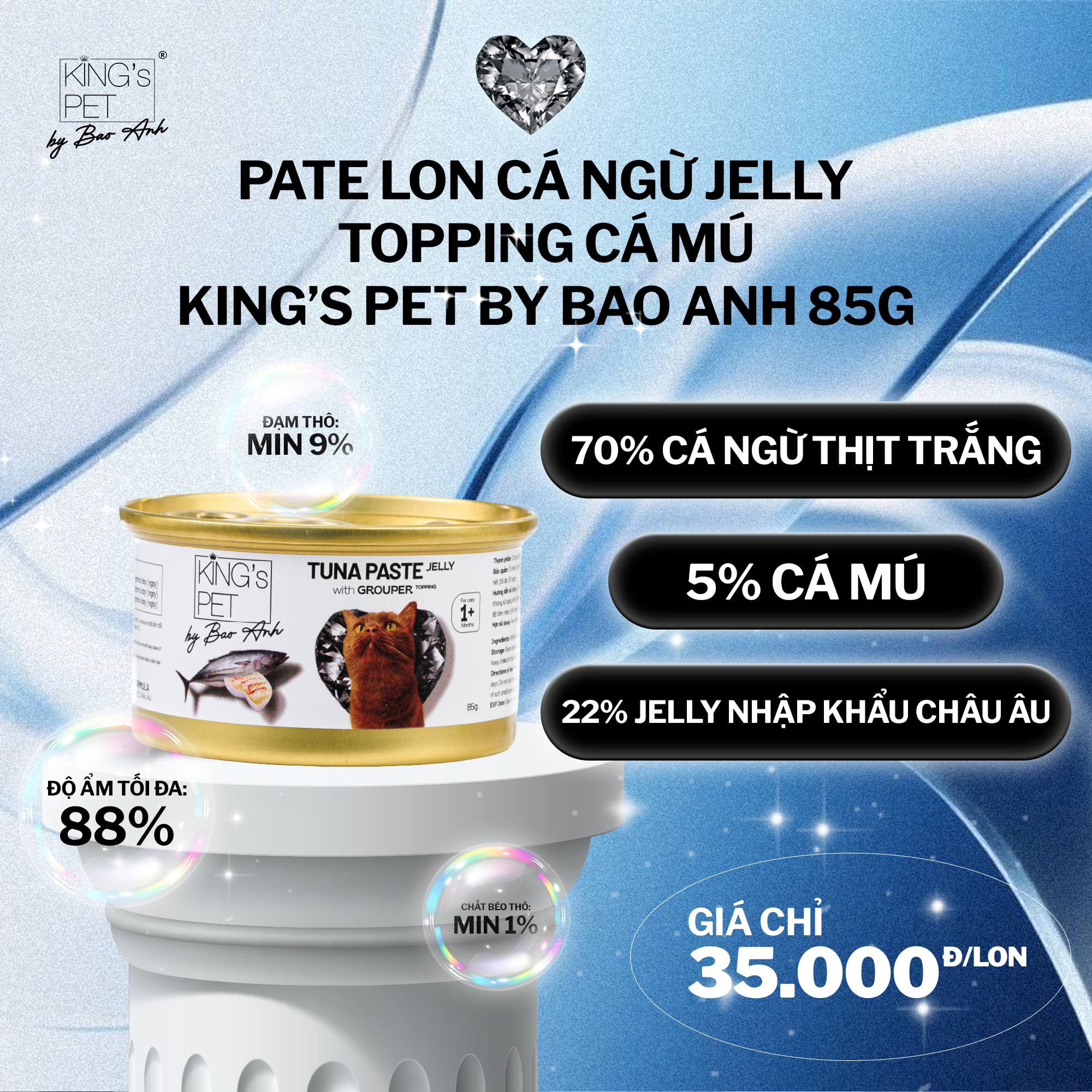 Pate lon cá ngừ jelly topping cá mú King’s Pet by Bao Anh 85g