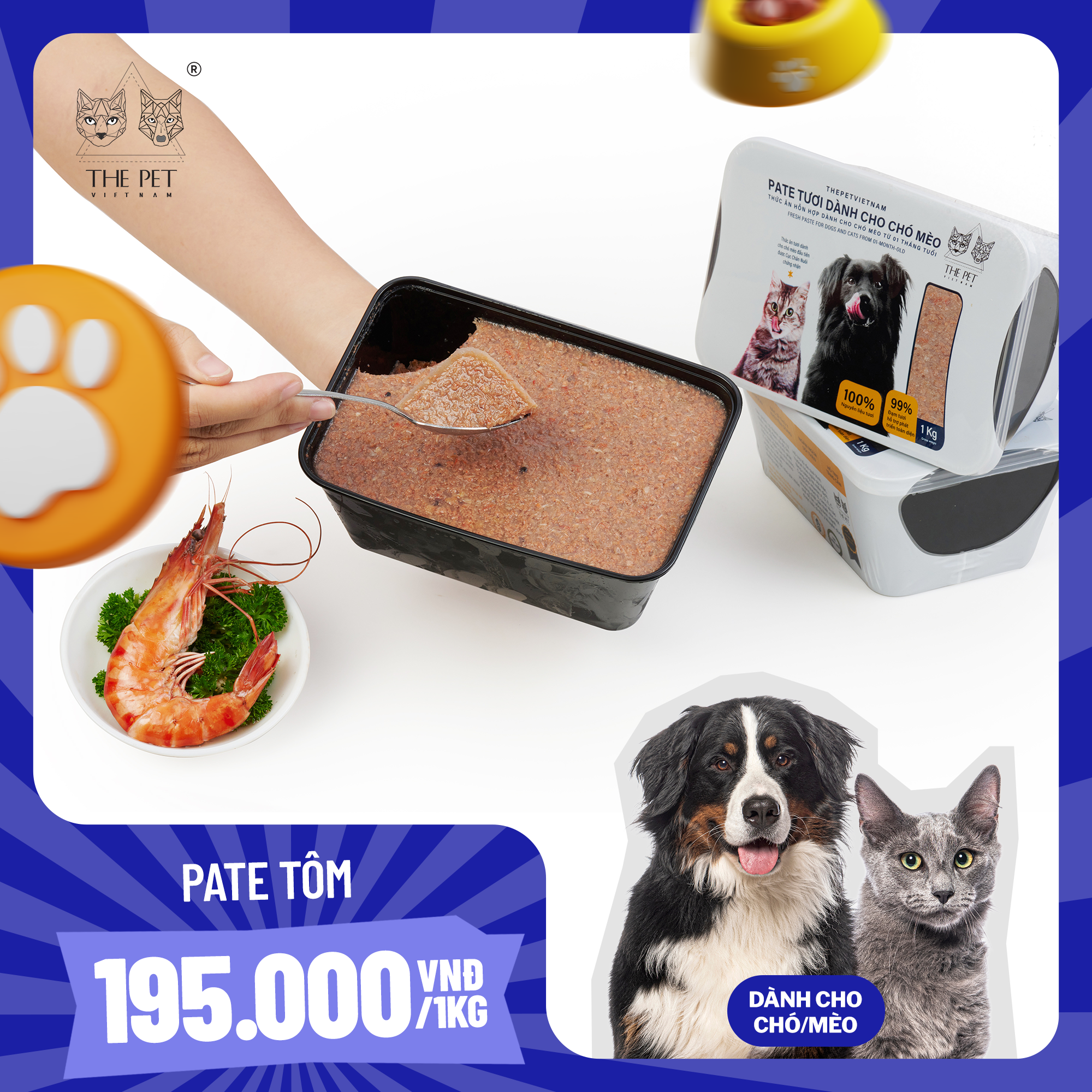Được làm từ những con tôm tươi mọng đến từ vùng nuôi trồng trù phú sông Cửu Long xay nhuyễn. Đem lại nguồn dinh dưỡng dồi dào cùng hàm lượng canxi và khoáng chất cao. Sản phẩm thích hợp cho mèo và chó sau khi bệnh, đang mang thai hoặc đang phát triển. | The product is made from the freshest prawn from Mekong Delta cultivation areas. Infused with high proteins and calcium from prawn. Every spoon of the cool fresh paste brings the perfect nutrients to fulfill the needs your cats and dogs that in high demand for calcium, protein, minerals such as pregnancy, under 3 months old.
